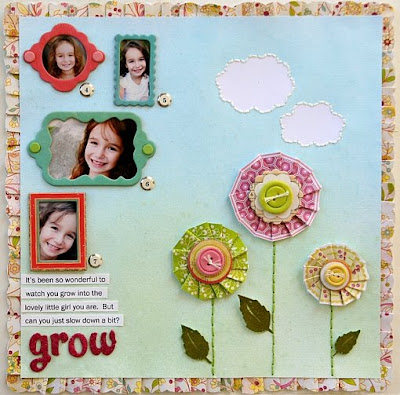 Grow by Stacy Cohen Stacy did sucha fabulous job with this layout. I love all the ruffling of the patterned paper she did on her layouts this month.